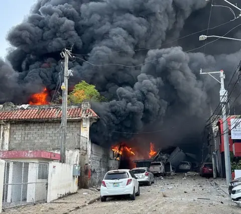 Hasta ahora las autoridades cuantifican tres personas muerta en la que figuran 2 adultos y una bebe de origen extranjero, más unos treinta heridos entre hombres y mujeres que ha sido el fruto de la explosión de un tanque de gas instalado supuestamente en una fábrica de plástico que funcionaba en medio de la ciudad de San Cristóbal.